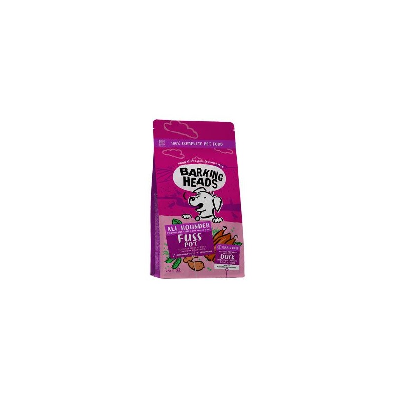 BARKING HEADS All Hounder Fuss Pot Duck 2kg - mujmazel.cz - Kompletní suché krmivo pro dospělé psy.