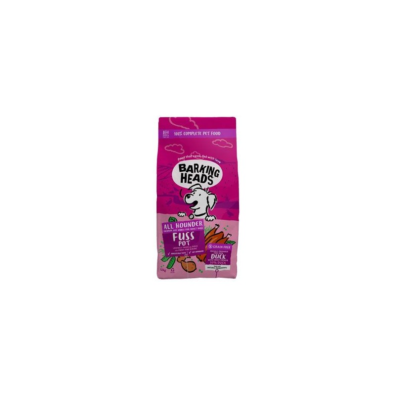 BARKING HEADS All Hounder Fuss Pot Duck 12kg - mujmazel.cz - Kompletní suché krmivo pro dospělé psy.