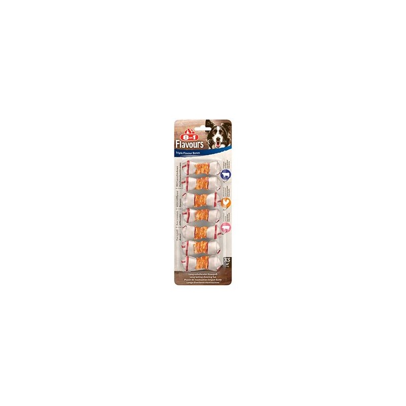 Pochoutka 8in1 Triple Flavour XS (7ks) - mujmazel.cz - Lahodné žvýkací kosti vyrobené ze surové vepřové a hovězí kůže obalené kuřecím masem - pro dlouhotrvající zábavu vašeho psa.