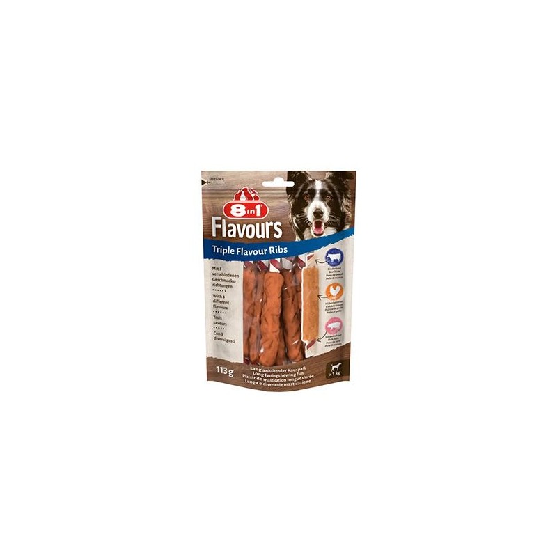Pochoutka 8in1 Triple Flavour ribs (6ks) - mujmazel.cz - Lahodná třívrstvá pochoutka s velkými kusy chutného kuřecího masa v kombinaci s vepřovou a hovězí kůží.