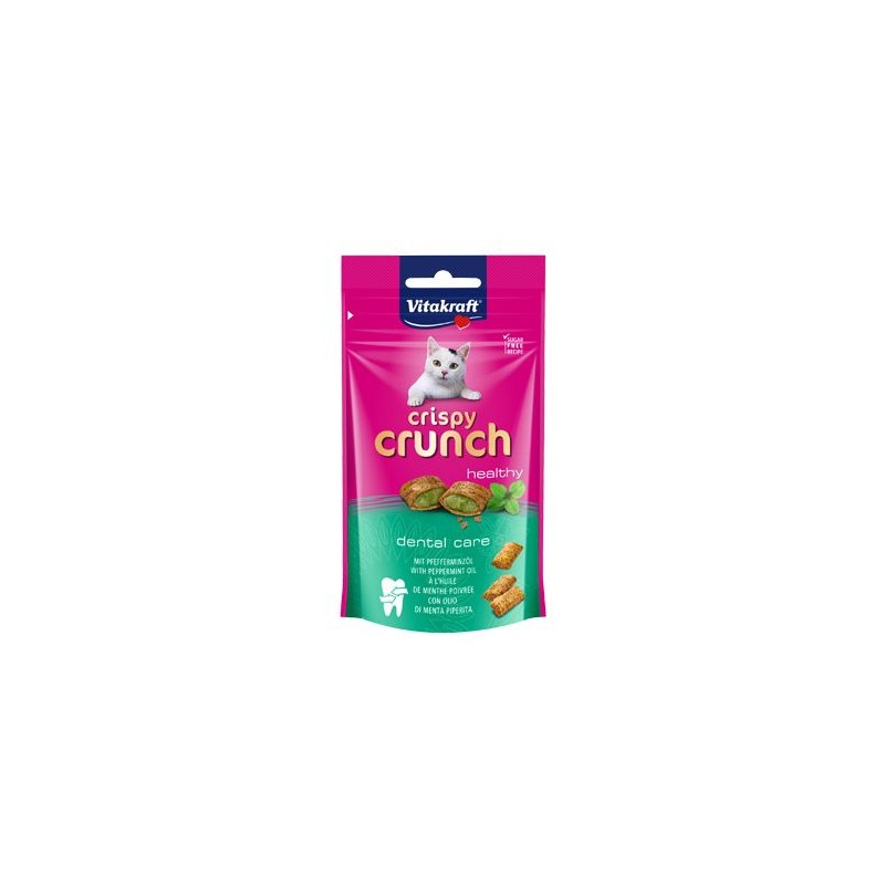 Vitakraft Cat pochoutka Crispy Crunch dental 60g - mujmazel.cz - Doplňkové krmivo pro kočky, křupavé cereální polštářky s krémovou náplní s mátovým olejem.