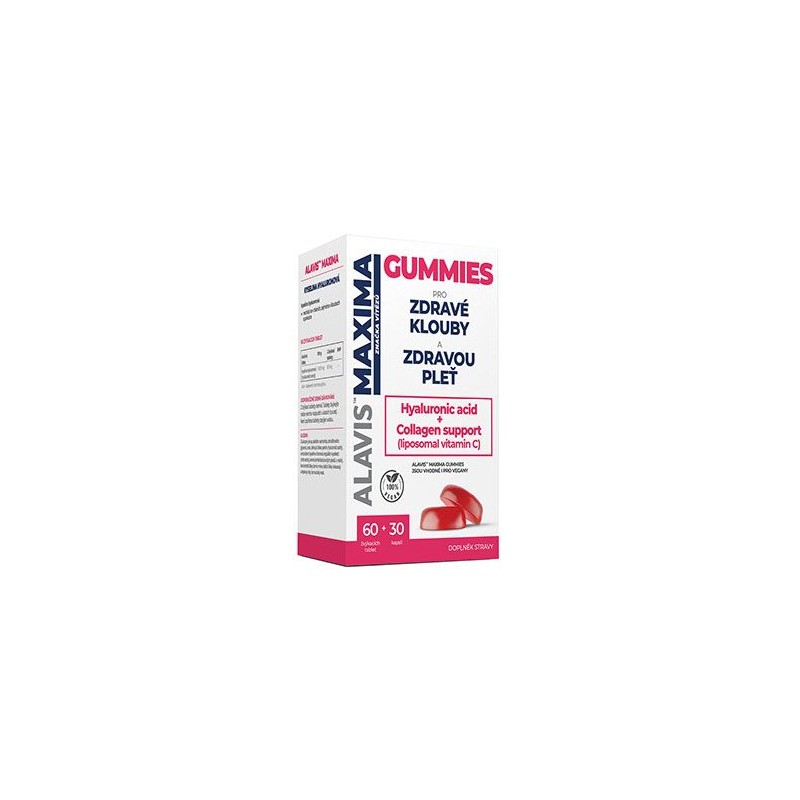 Alavis MAXIMA Gummies 60tbl+30cps - mujmazel.cz - Chutné bonbóny s vysokým obsahem kyseliny hyaluronové. Kyselina hyaluronová a Collagen support (liposomální vitamin C). Liposomální vitamin C pro zdravé klouby a pružnou pleť.