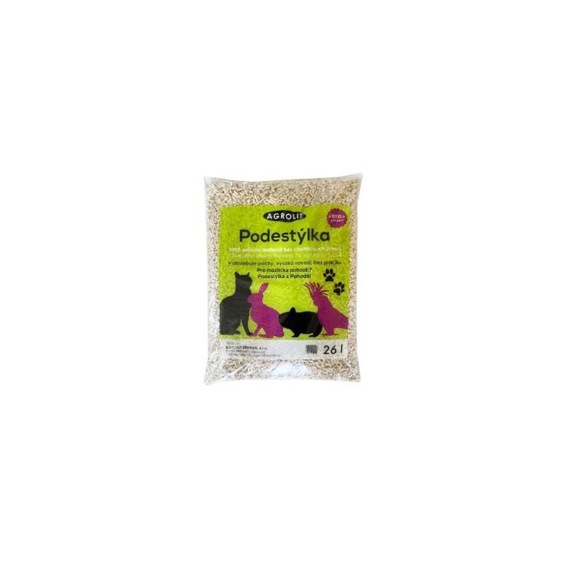 Podestýlka Agrolit dřevěná lisovaná 26 litrů - mujmazel.cz - Podestýlka je čistě přírodní středně hrubě granulovaná, neprašná, bez chemických příměsí a pojidel. Výrobní surovinou jsou kvalitní odkorněné piliny měkkého dřeva.