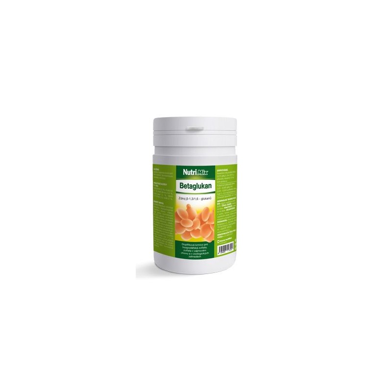 NutriMix Betaglutan je speciální přípravek s obsahem nechráněných β-1,3/1,6 – glukanů na podporu nespecifické imunity u zvířat. Betaglukany zvyšují v jejich těle počet bílých krvinek (makrofágů), které chrání organismus před choroboplodnými zárodky procesem zvaný fagocytóza. Je vhodný pro všechny druhy zvířat, především s vysokou užitkovostí, mláďata a zvířata v rekonvalescenci.