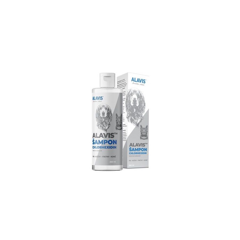 Alavis Šampon Chlorhexidin 250ml - mujmazel.cz - Šampon, který slouží jako podpora léčby kožních onemocnění a zevní péče o srst a kůži psů, koček, fretek a koní.