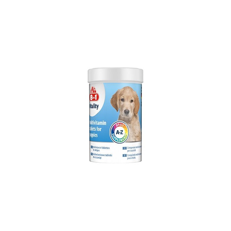 Vitality Multivitamin 8in1 for Puppies 100tbl - mujmazel.cz - Doplňkové krmivo pro štěňata, multivitaminové tablety jsou formulovány tak, aby poskytovaly doplňkovou výživu na podporu potřeb rostoucí štěňata a pomáhají předcházet problémům spojeným s nedostatkem výživy během růstové fáze vašeho štěněte.