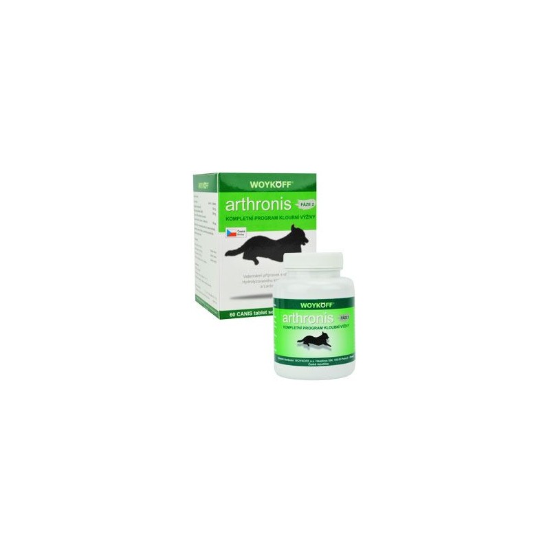 Artrhronis fáze 2 je přípravek určený k regeneraci kloubních povrchů a maziv tím, že kloubu dodává výživné látky. Je vhodný k podávání po ukončení léčby D-Glukosamin sulfátem nebo jako prevence ve štěněčím věku. Obsahuje kombinaci tří účinných látek: Hydrolyzovaný kolagen, MSM a Lactomin Veterinární přípravek s obsahem 700 mg hydrolyzovaného kolagenu, 250 mg MSM a 150 mg Lactominu 60 CANIS tablet se sýrovou příchutí